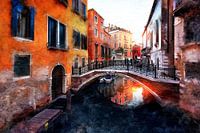 Digitaal olieverf schilderij van een kleurrijk kanaal in Venetië (Italië).