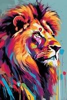 Dit kleurrijke kunstwerk brengt energie en levendigheid in elke ruimte. Het portret van een leeuw, weergegeven in felle, contrasterende kleuren, trekt onmiddellijk de aandacht. Het gebruik van dynamische penseelstreken en spatten van verf geven het ontwerp een moderne, abstracte uitstraling. Deze pop-art creatie is perfect voor mensen die op zoek zijn naar een gedurfde, eigentijdse toevoeging aan hun interieur. De mix van warme en koele tinten maakt dit schilderij veelzijdig, waardoor het past in verschillende ruimtes, zoals de woonkamer, een kantoor of een creatieve werkplek. Het portret symboliseert kracht en trots, wat een krachtige boodschap overbrengt.