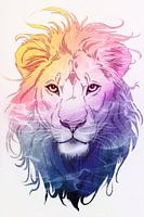 Dit kunstwerk toont een indrukwekkend portret van een leeuw, uitgevoerd in een prachtige digitale kunststijl. De leeuw lijkt doorweven met vloeiende kleuren die van geel naar paars en blauw verlopen, wat zorgt voor een mystieke en serene uitstraling. Het ontwerp heeft een rustige, bijna etherische kwaliteit door de golvende lijnen die doen denken aan water, wat een gevoel van beweging en vrijheid toevoegt. Deze combinatie van kracht en zachtheid maakt dit kunstwerk perfect voor moderne interieurs, vooral in ruimtes waar een krachtige, kleurrijke aanwezigheid gewenst is. Denk aan een slaapkamer of een kantoor waar creativiteit en inspiratie centraal staan. Met zijn levendige kleurenschema en dynamische stijl is het een prachtig kunstwerk voor iedereen die van moderne digitale kunst houdt.