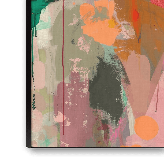 Kleurrijk, modern en abstract portret. Een bijzondere blikvanger voor je interieur. Kies zelf het formaat en materiaal bij dit werk en maak het helemaal naar wens, In groen, oranje, paars en roze. Moderne en abstracte kunst.