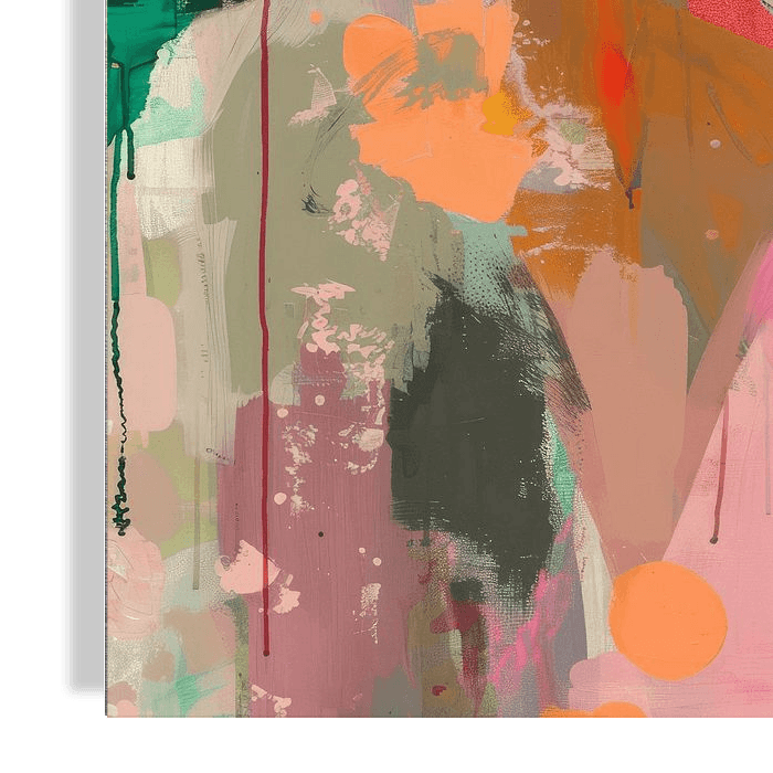 Kleurrijk, modern en abstract portret. Een bijzondere blikvanger voor je interieur. Kies zelf het formaat en materiaal bij dit werk en maak het helemaal naar wens, In groen, oranje, paars en roze. Moderne en abstracte kunst.