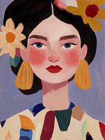 Kleurrijk modern en abstract portret van een jonge vrouw met grote oorbellen en bloemen in het haar. Illustratie. Een bijzondere blikvanger voor je interieur! Kies zelf het formaat en materiaal bij dit werk en maak het helemaal naar wens.