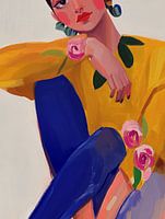 Deze dame straalt een mengeling van dromerige nonchalance en botanische chic uit, alsof ze net een bloemenwinkel is binnengewandeld en dacht, "Ja, deze rozen zijn precies wat ik nodig heb voor mijn outfit." Met een losse houding, knallend geel shirt en een mysterieuze blik, lijkt ze te denken, "Ik ben hier niet voor de bloemen - de bloemen zijn hier voor mij." De perfecte balans tussen casual en classy, zoals een ochtendje koffie drinken in Parijs met een vleugje 'ik hoef er niet eens moeite voor te doen'.