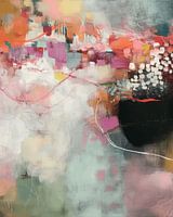 Kleurrijk, modern en abstract in pastelkleuren met zwart voor het nodige contrast. Dit is een echte blikvanger voor je interieur!