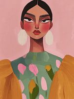 Kleurrijk modern en eclectisch portret, hippe illustratie. Een bijzondere blikvanger voor je interieur! Kies zelf het formaat en materiaal bij dit werk en maak het helemaal naar wens.