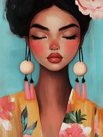 Kleurrijk modern portret. Een bijzondere blikvanger voor je interieur! Kies zelf het formaat en materiaal bij dit werk en maak het helemaal naar wens. Dit werk is vrolijk, kleurrijk en eclectisch.