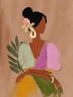 Een stijlvol abstract portret in zachte, warme tinten dat elegantie en kracht uitstraalt.