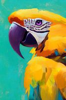 Een felgele papegaai met levendige kleuren en een indrukwekkende, expressieve blik trekt onmiddellijk de aandacht. De zachte achtergronden benadrukken zijn schoonheid en creëren een harmonieuze sfeer. Dit kunstwerk is perfect voor de woonkamer en verandert de kamer in een exotische oase vol leven en frisheid.