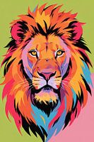Dit unieke kunstwerk brengt een levendig popart-gevoel in elke ruimte. Het kleurrijke portret van een leeuw, uitgevoerd in felle tinten zoals oranje, geel, roze en blauw, trekt onmiddellijk de aandacht. Dit ontwerp is perfect voor wie op zoek is naar een opvallend kunstwerk dat een dynamische sfeer creëert. Of je het nu in je woonkamer, kantoor of hobbykamer ophangt, het zal zeker een gespreksonderwerp zijn. De heldere kleuren en de moderne stijl maken dit kunstwerk een ideale keuze voor liefhebbers van eigentijdse kunst en dierenportretten. Voeg een vleugje levendigheid toe aan je interieur met dit prachtige stuk.