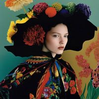Kleurrijk en verrassend "Colorful fashion". Dit verrassende werk fleurt iedere muur op. Een niet alledaags beeld vol kleur: we zien een vrouw met kleurrijke kleding in een met een evenzo kleurrijke achtergrond.