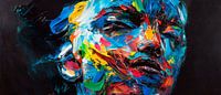 Een explosie van levendige kleuren en dynamische penseelstreken voert de kijker mee naar een wereld vol emoties. De bijna etherische gelaatstrekken stralen zowel rust als passie uit. Dit fascinerende kunstwerk past perfect in de woonkamer, waar het een gesprek kan stimuleren en inspireren.