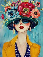 Kleurrijk portret "Fashionista". Bijzondere illustratie van een kleurrijke dame. Kies zelf het formaat en materiaal en maak er een echte blikvanger voor je interieur van. Exclusief bij Werk aan de Muur.