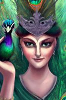 Over ‘Kleurrijk portret Oosterse vrouw met pauw’ van Maud De Vries