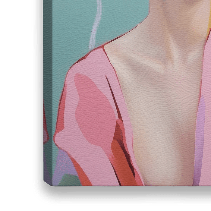 Kleurrijk portret, illustratie in knalkleuren. Houd jij van echte blikvangers in je interieur? Dan is dit werk helemaal voor jou. Voor de echte durfals die iets anders dan anders aan de muur willen.