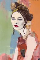 Kleurrijk en modern portret in pastelkleuren afgewisseld met warmere tinten voor het nodige contrast. Bijzonder met een moderne uitstraling.