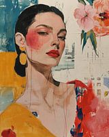 Kleurrijk portret in pastelkleuren. Collage stijl. Kies zelf het formaat en materiaal bij dit werk en maak het helemaal passend voor jouw interieur. Een bijzondere blikvanger!