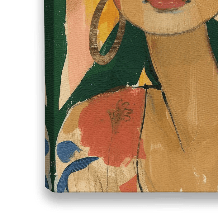 Kleurrijk portret, moderne illustratie van een jonge vrouw en vrolijke warme kleurtinten. Dit is een bijzondere blikvanger voor je interieur! Kies zelf het formaat en materiaal en maak er een echte blikvanger van.