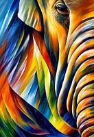 Een kleurrijk digitaal schilderij van een Olifant. Het werk heeft een abstracte impressionistische stijl met felle kleuren en hoog contrast. Dit werk voegt een vrolijke en vriendelijke uitstraling toe aan ieder interieur!