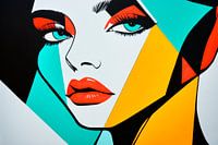 Een fascinerend portret dat fascinerende blikken opvangt met heldere kleuren en krachtige contrasten. De levendige accenten van oranje, blauw en geel geven het gezicht een moderne frisheid en trekken ieders aandacht. Ideaal voor een levendige woonkamer, waar het een gesprek kan stimuleren en de sfeer kan verlevendigen.