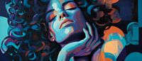 Een harmonieus samenspel van levendige kleuren en zachte vormen legt de kalmte en innerlijke schoonheid van een dromerig figuur vast. Haar gesloten ogen en de zachte contouren van haar gezicht stralen sereniteit uit. Dit kunstwerk geeft een sfeervol, artistiek tintje aan een slaapkamer of gezellige woonkamer en nodigt uit om te blijven hangen.
