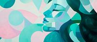 Een harmonieus samenspel van zachte kleuren en geometrische vormen ontvouwt zich in een artistiek portret dat rust en diepte uitstraalt. De houding met gesloten ogen geeft het werk een meditatieve kwaliteit, terwijl de gebogen lijnen een gevoel van beweging overbrengen. Perfect voor een woonkamer om een inspirerende sfeer te creëren.