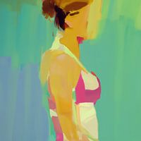 Kleurrijk schilderij abstract. Warme kleuren zorgen voor een bijzonder kleurenpalet. Ondanks de abstractie, is toch een figuur / persoon te herkennen in dit werk.