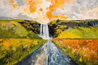 Kleurrijk schilderij van landschap met waterval van Art & Soul Creations