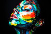 Een uitdrukking van pure creativiteit ontvouwt zich in levendige kleuren die over een gezicht stromen en emoties weerspiegelen. De stralende nuances van blauw, geel en rood creëren een betoverende harmonie die de kijker betovert. Dit kunstwerk geeft een inspirerend tintje aan elke woonkamer en stimuleert gesprekken over schoonheid en individualiteit.