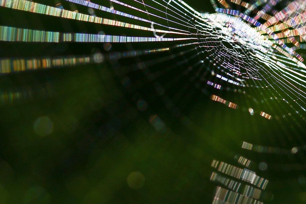 Een spinnenweb in de zon en een klein briesje is het recept voor een waar kleurspektakel.