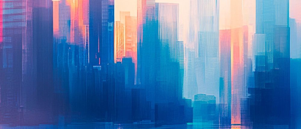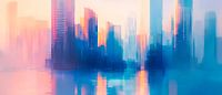Een dynamisch kleurenspel in zachte pasteltinten ontvouwt zich voor de kijker, terwijl de silhouetten van torenhoge gebouwen baden in een dromerig licht. Dit kunstwerk voegt een stijlvolle touch toe aan elke moderne woonkamer en nodigt je uit om te ontspannen en te dromen van stedelijke avonturen.