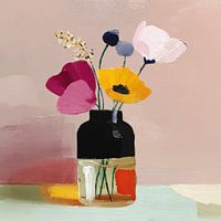 Kleurrijk stilleven met bloemen in cottagecore stijl. Een bijzondere blikvanger voor je interieur! Kies zelf het formaat en materiaal bij dit werk en maak het helemaal naar wens.