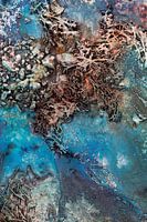 Detailfoto van een schilderij dat ik maakte, geïnspireerd door de onderwaterwereld van de Malediven.
