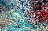 Detailfoto van een mixed media schilderij dat ik maakte, geïnspireerd door de onderwaterwereld van de Malediven.