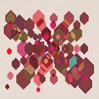 Modern abstract geometrisch patroon met hexagon vormen in retro geïnspireerd kleurenpalet.