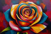 Dit levendige kunstwerk ademt een moderne geest met zijn abstracte interpretatie van een roos. De energieke draaiingen van kleur trekken de kijker onmiddellijk in een dans van rood, geel, blauw, oranje en groen, die samen een harmonieuze compositie vormen. Het is een statement stuk dat elke ruimte kan transformeren met een splash van kleur en een vleugje abstracte natuur. De kunst is niet alleen een blikvanger maar nodigt ook uit tot reflectie over de schoonheid van de natuur en de kracht van kleur in onze wereld. Perfect voor een hedendaagse woonkamer of een creatieve werkruimte, het biedt een unieke esthetiek die zowel tijdloos als op de voorgrond van moderne design trends is.