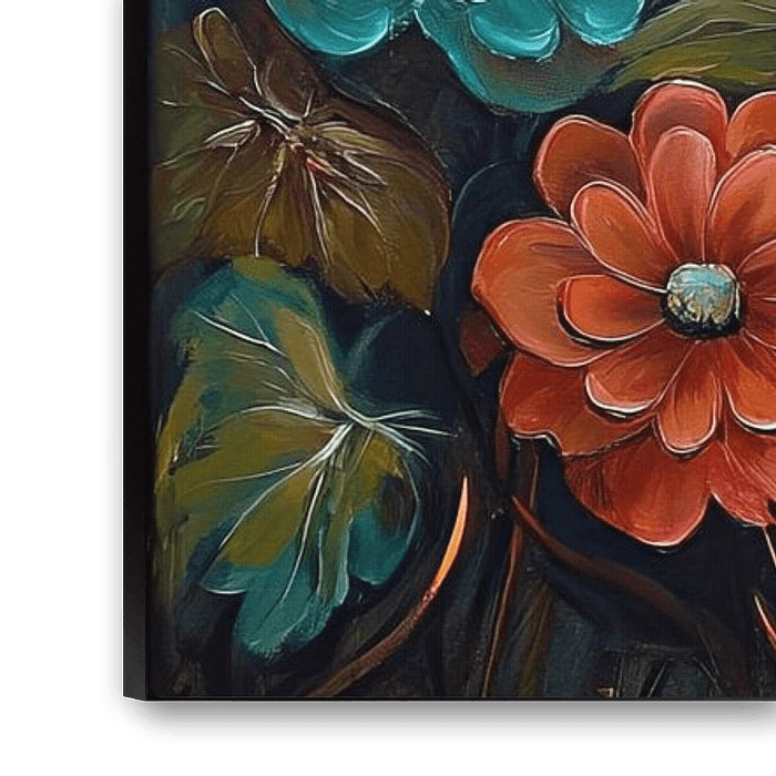 Details: bloemenschilderij, abstract kunstwerk, kleurrijk schilderij, canvas kunst, moderne kunst, huisdecoratie, bloemendecor, interieurdesign, muurkunst, sfeervolle kunst