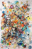 Ontdek Kleurrijke Gedachtenwarboel: een dynamisch en modern kunstwerk dat de essentie van hedendaagse creativiteit belichaamt. Met een explosie van kleur en vorm, roept dit stuk een gevoel van georganiseerde chaos op dat zowel stimulerend als verrassend rustgevend is. Perfect voor de woonkamer of het kantoor, het zet aan tot reflectie en fantasie, en is een gespreksonderwerp voor liefhebbers van moderne kunst. Dit kunstwerk, rijk aan kleur en abstracte expressie, is een opmerkelijke toevoeging aan elke ruimte.