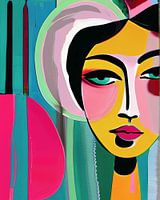 Laat je inspireren door deze levendige en expressieve schilderij, waar kleuren in een speelse dans samenkomen. Het kunstwerk toont een intrigerend gezicht, omringd door een palet van felle kleuren zoals diep roze, levendig groen en zachte tinten, wat een eigentijdse en moderne sfeer oproept. De helderheid van de kleuren en de sterke lijnen creëren een visuele impact die elke ruimte onmiddellijk verlevendigt. De subtiele afwisseling van vormen en de krachtige uitstraling van de blik roepen een gevoel van zelfvertrouwen en creativiteit op, waardoor dit stuk niet alleen een lust voor het oog is, maar ook een gesprekspunt in je interieur wordt. Gemaakt met een unieke techniek waarbij de verf direct op het canvas is aangebracht, straalt deze creatie warmte en vreugde uit, perfect voor een leefruimte, werkplek of creatieve hoek. Dit werk biedt niet alleen een esthetische meerwaarde, maar transformeert ook de energie van de ruimte waarin het zich bevindt, waardoor het een onmisbaar stuk is voor ieder kunstliefhebber.