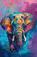 "Kleurrijke Kolos" toont de imposante aanwezigheid van een olifant in een explosie van levendige kleuren en dynamische penseelstreken. De combinatie van warme roze- en oranje tinten met koelere blauwe en paarse accenten creëert een fascinerend contrast dat de grootsheid en kracht van de olifant benadrukt. De gedetailleerde weergave van de huidplooien en de levendige kleuren brengen een gevoel van energie en beweging over. Dit kunstwerk is een perfecte aanvulling voor liefhebbers van dierenportretten en moderne kunst, en voegt een gedurfde, kleurrijke energie toe aan elk interieur.