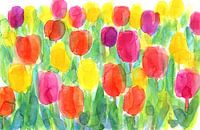 Koop dit bloemen kunstwerk Kleurrijke Lentetuin met Tulpen Aquarel van Karen Kaspar als print op canvas, aluminium dibond, (ingelijste) fotoprint, behang en ArtFrame. Voor jou op maat geprint in Fine-Art kwaliteit.
