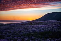 Deze foto is genomen in noordoost IJsland in de buurt van Húsavík. In de zomer gaat de zon bijna niet onder en dat betekent dat je op mooie dagen prachtige zonsondergangen hebt. Op deze avond trok bewolking langzaam richting zee en de laagstaande zon verlichtte de wolken prachtig. En dus stapte ik rond middernacht op de fiets hopende mooie foto's te kunnen maken.