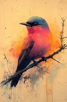 Dit levendige kunstwerk toont een vogel met opvallend roze en blauwe veren, zittend op een delicate tak tegen een warme, abstracte achtergrond. De intense kleuren en de fijne details van het verenkleed creëren een harmonieuze balans tussen energie en sereniteit. Een perfecte keuze voor liefhebbers van moderne natuurkunst met een speelse…