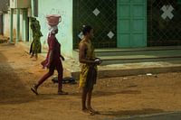 Dit levendige kunstwerk vangt de essentie van het dagelijkse leven in Senegal. De foto toont een kleurrijk straatbeeld vol energie en dynamiek, met levendige kleuren die de rijke cultuur en het bruisende leven van de Senegalese straten weerspiegelen. De combinatie van architectuur, mensen en de unieke sfeer van de omgeving creëert een visueel feest dat de kijker uitnodigt om de schoonheid en diversiteit van Senegal te ontdekken. Perfect voor liefhebbers van reisfotografie en kleurrijke kunstwerken.