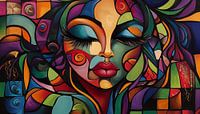 Kleurrijke Vrouw kubisme creatief panorama schilderij die een unieke en luxe toevoeging zal zijn aan elke ruimte. Met zijn unieke en stijlvolle uitstraling is het een ware eyecatcher. De schitterende kleuren en het bijzondere ontwerp maken dit kunstwerk 100% uniek en origineel. Het is de perfecte fotoprint om je interieur helemaal af te maken.