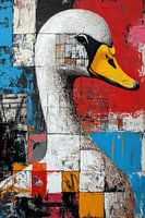 Kleurrijke Zwaan - Dit is een abstract schilderij van een vogel, een zwaan om precies te zijn, uitgevoerd in een dynamische mix van geometrische blokken en levendige kleuren, wat een speels en modern effect geeft geïnspireerd door urban art.