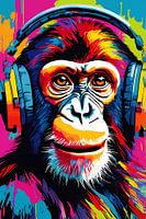 Dit opvallende ontwerp trekt direct de aandacht met zijn felle kleuren en dynamische uitstraling. Een kleurrijke aap met een koptelefoon in een moderne pop art stijl vult de ruimte met energie en levendigheid. De combinatie van levendige tinten zoals rood, geel en blauw zorgt voor een indrukwekkend contrast dat elke ruimte opfleurt. Het speelse karakter van de afbeelding maakt het een perfecte keuze voor een moderne woonkamer, kantoor of hobbykamer. Dit kunstwerk is ideaal voor liefhebbers van eigentijdse en gedurfde kunst die iets unieks aan hun interieur willen toevoegen. Laat deze kleurrijke en moderne aap de toon zetten voor een energieke en creatieve sfeer in huis.