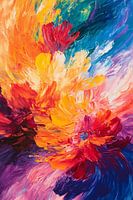 Dit kunstwerk barst van de levendige kleuren en dynamische penseelstreken, die een explosie van bloemen op een abstracte manier weergeven. Met rijke tinten geel, oranje, rood en paars trekt het ontwerp onmiddellijk de aandacht en brengt het een gevoel van energie en beweging over. Dit schilderij zou prachtig staan in een moderne ruimte…