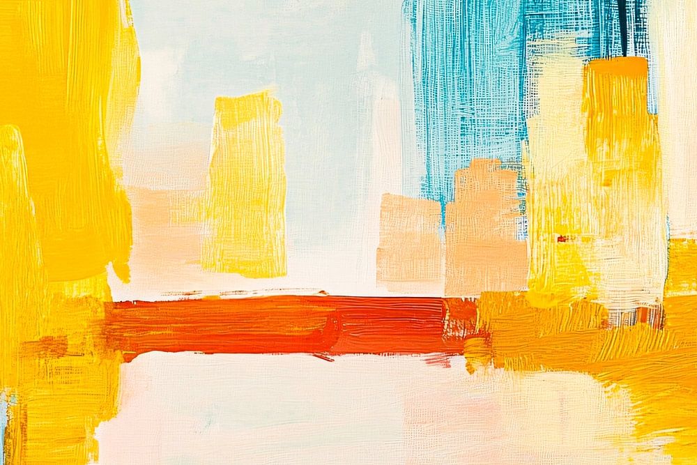 Dit kunstwerk straalt energie en moderniteit uit met zijn levendige kleuren en abstracte stijl. De felle tinten geel, rood en blauw, gecombineerd met zachte roze en witte nuances, brengen een gevoel van dynamiek en creativiteit. Het schilderij vangt de essentie van een stedelijke omgeving en een brug, en nodigt de kijker uit om de abstracte vormen en betekenissen te verkennen. Dit unieke stuk voegt een moderne en artistieke flair toe aan elke ruimte en is ideaal voor mensen die van kleurrijke en eigentijdse kunst houden. Perfect voor in de woonkamer, kantoor of een creatieve werkruimte.