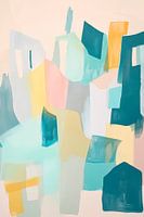 Zachte kleurtonen in een harmonieus samenspel geven de kamer een rustige, uitnodigende sfeer. Met zijn abstracte vormen en speelse accenten brengt de compositie leven en lichtheid - perfect voor de woonkamer of een creatief kantoor. Een echte blikvanger die uitnodigt om te blijven hangen en te dromen.