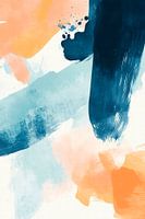 Heldere kleurlagen in zachte blauwe en oranje tinten dansen harmonieus over het canvas en creëren een levendige sfeer. De dynamische penseelstreken geven de kamer een creatieve energie die perfect is voor een moderne woonkamer. Daar kan dit kunstwerk gesprekken stimuleren en een ontspannen sfeer creëren.